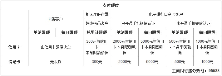 例:中国工商银行支付额度