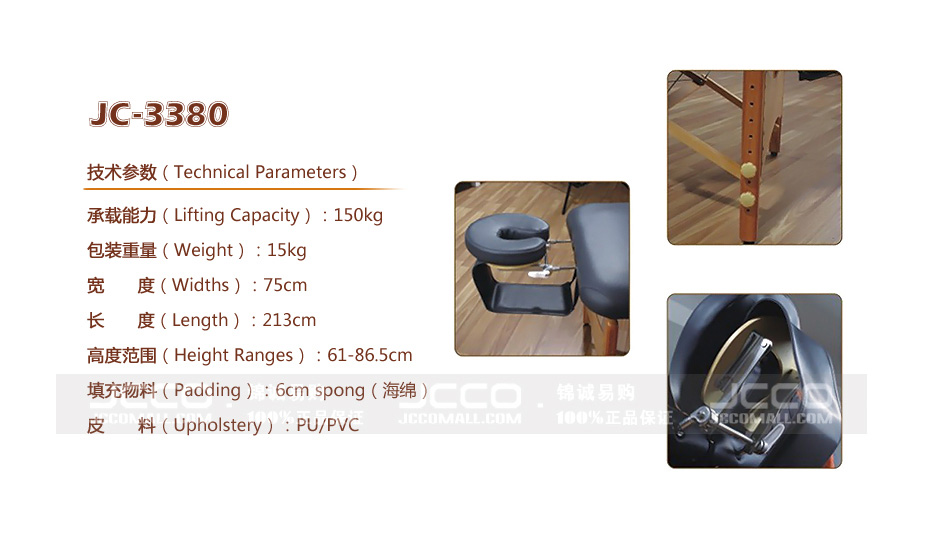 JCO锦 便携式美容床 木质结构底座 用途广泛 适合多种美容场所