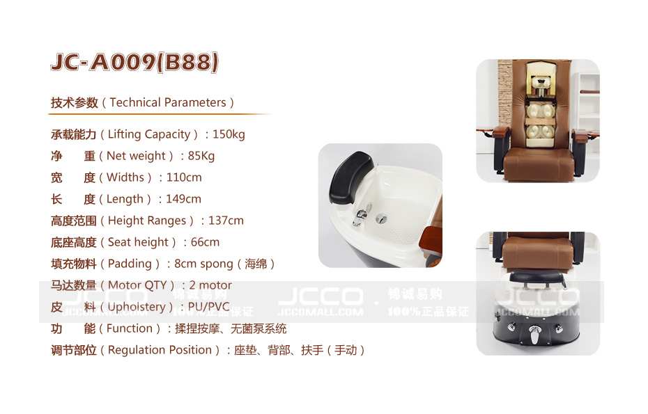 • JC-A009(B88) JCO锦 高档电动沐足椅  美容美甲足疗场所必备设备