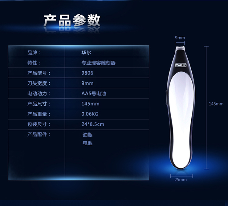 • 美国进口 华尔专业电推剪9805 理容雕刻器 精致轻巧 典雅炫酷