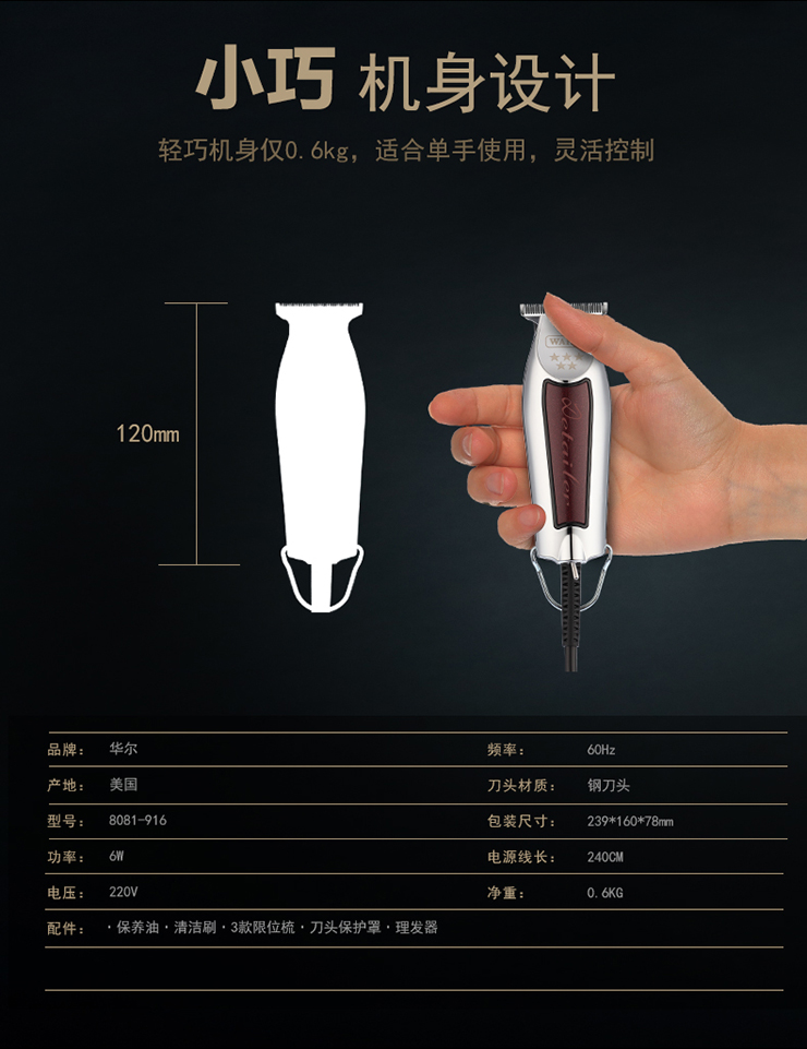 • 美国进口 华尔雕专业理发器T形刀头 复古油头雕刻器08081