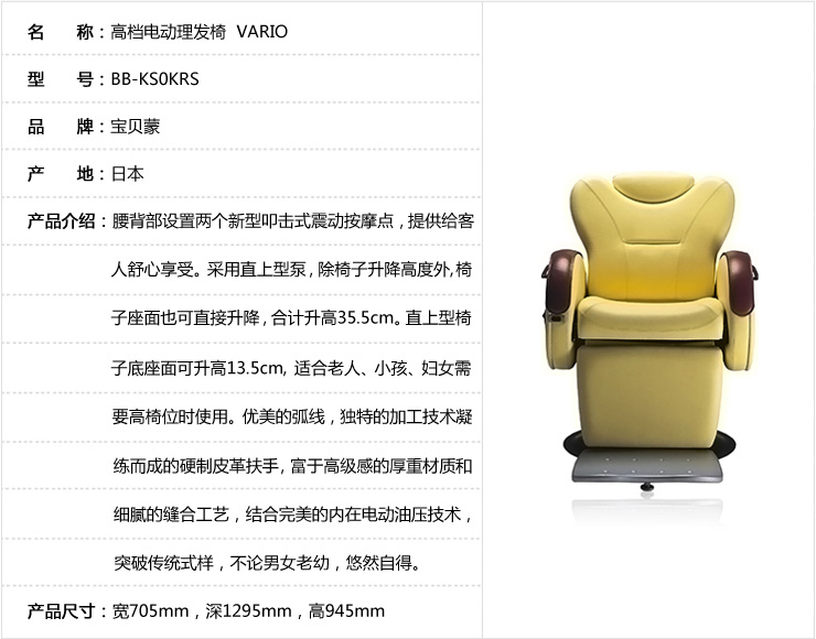 • 日本进口宝贝蒙 高档电动理发椅 VARIO